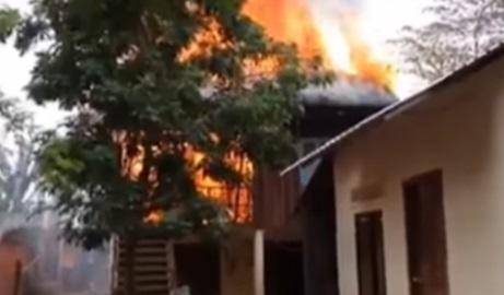Namun sayang, api yang terus membesar keburu melahap habis rumah wanita ini. Meskipun sudah berusaha, warga tetap tidak bisa memadamkannya.