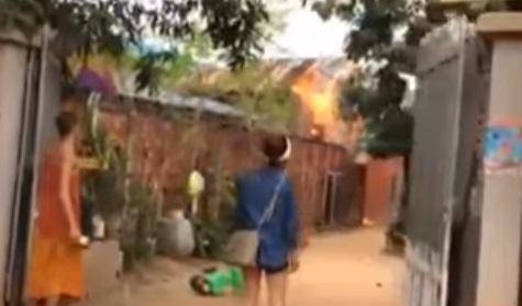 Wanita ini pun berteriak-teriak dan menjerit-jerit melihat rumahnya dilahap si jago merah. Para warga berusaha menangkan wanita ini.